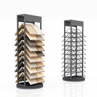 Espositore Mobile in Metallo a Doppio Lato Personalizzato - Stand per Campioni di Piastrelle e Marmo con Pannello a Doghe per Showroom